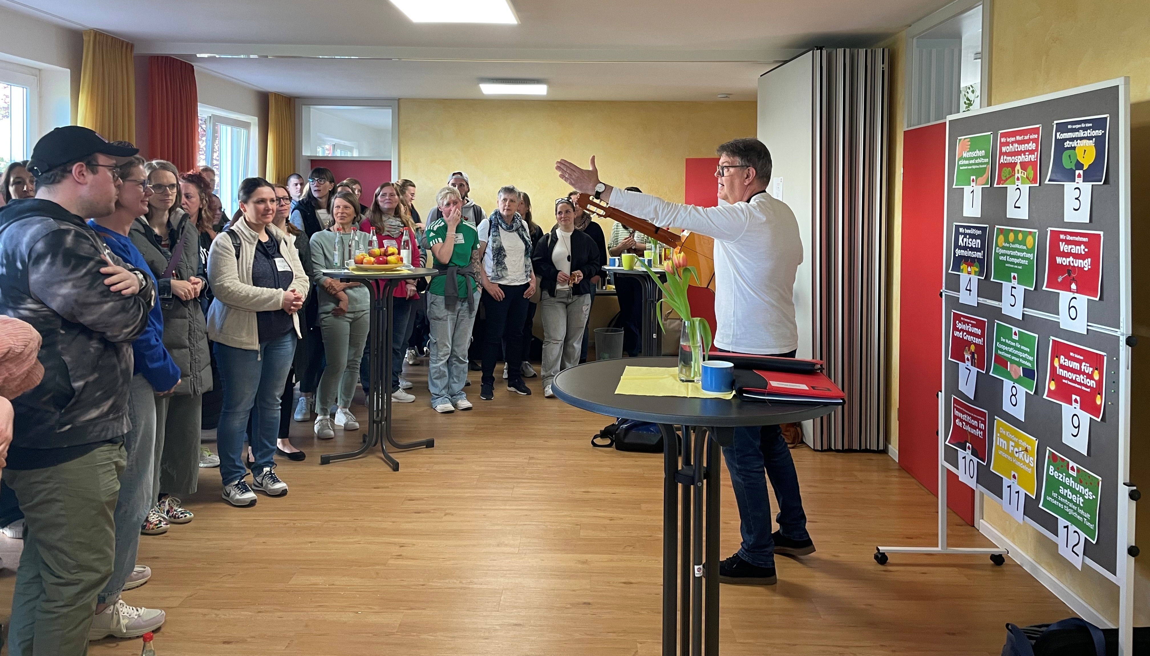Am 5. April fand ein Villa-Fachtag für alle Mitarbeitenden statt. In ausgewählten Workshop Gruppen gab es gute Gespräche, Austausch und Auseinandersetzung mit relevanten Themen der Pädagogik sowie der Kinder- und Jugendhilfe. Im Fokus stand der direkte und praktische Bezug zur Umsetzung in unserer pädagogischen Arbeit. In einem gemeinsamen Villa-Erlebnis in Form von unterschiedlichen Aktionen, kam auch das Miteinander nicht zu kurz.