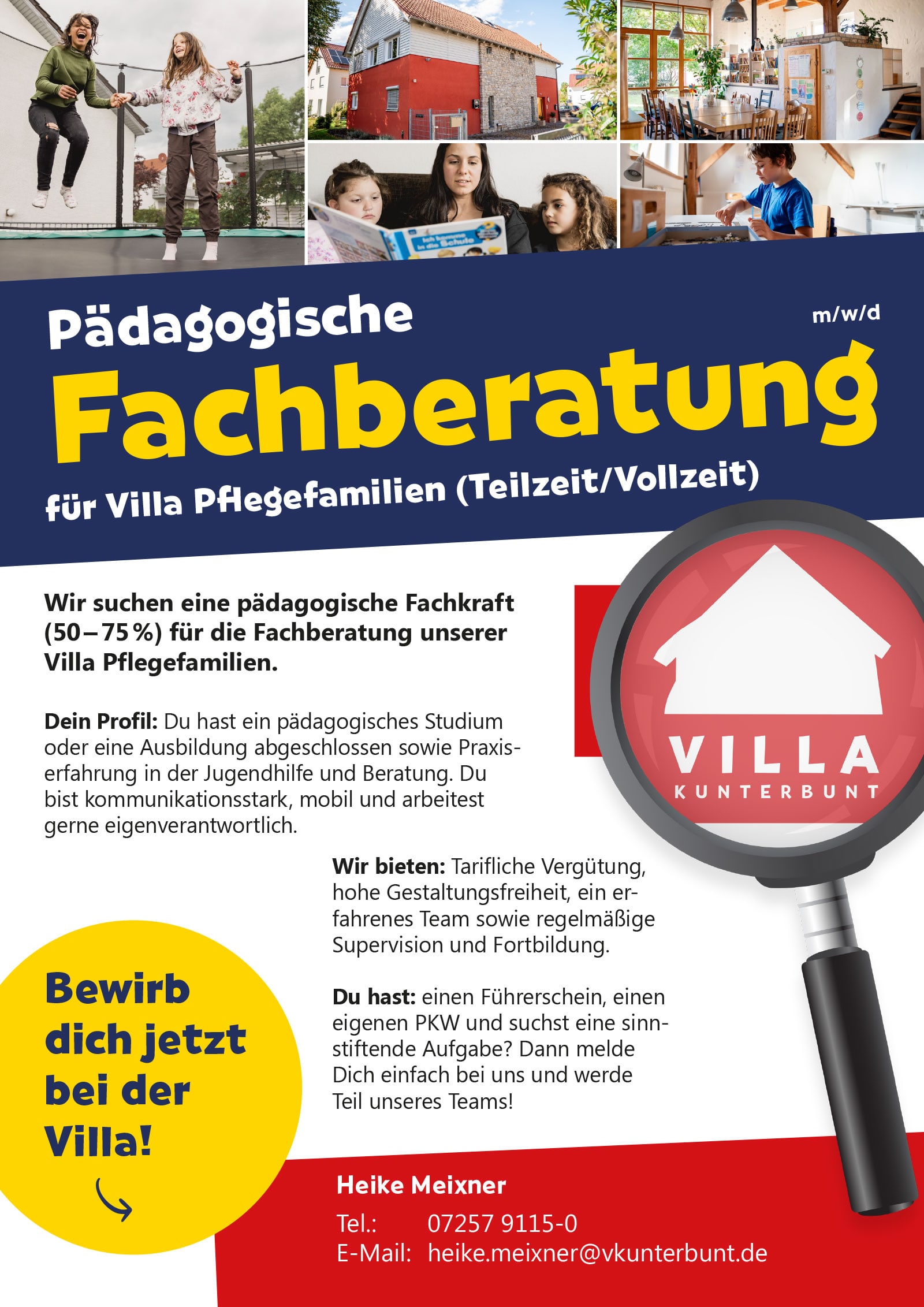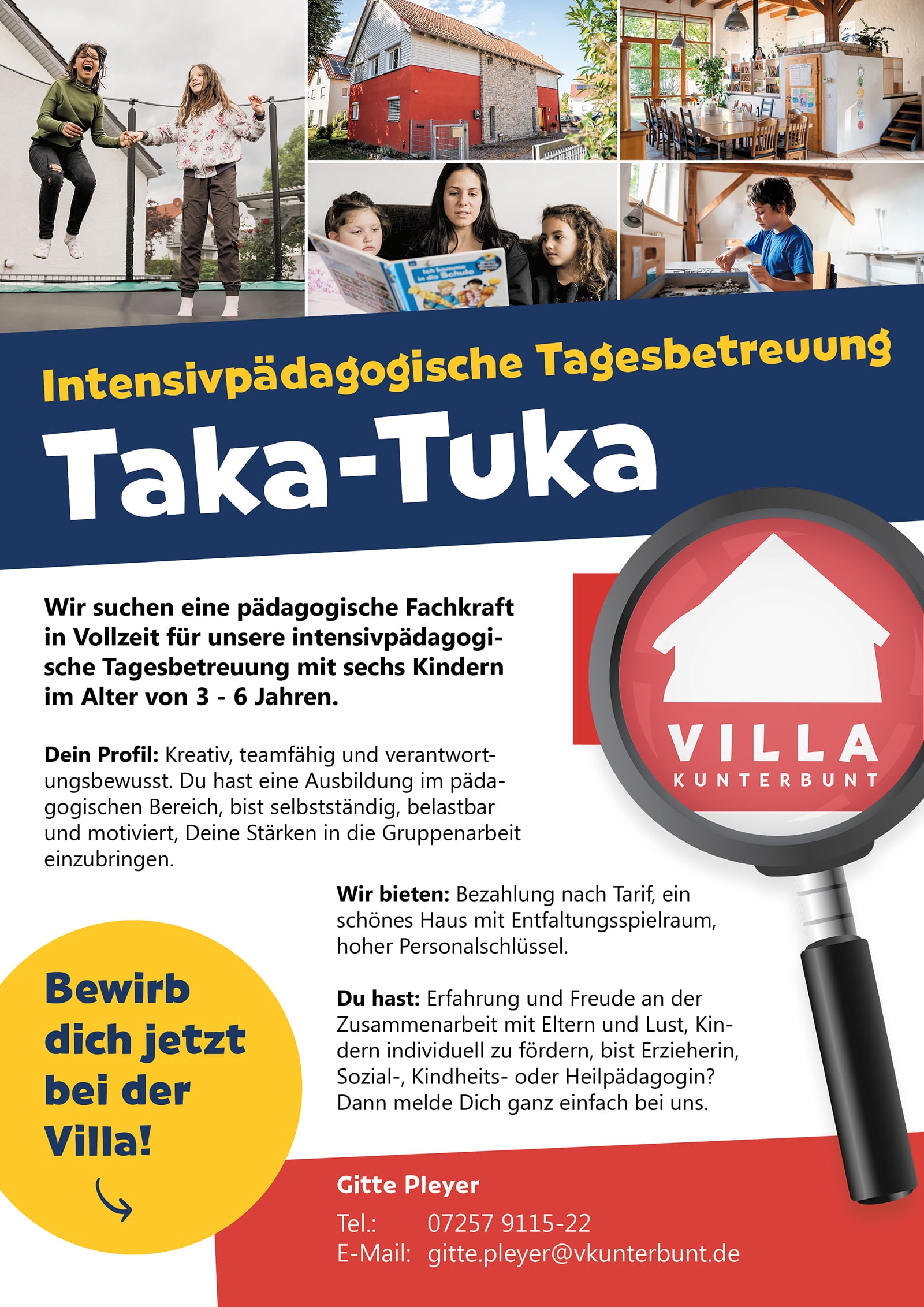 Die Villa steht für familienanaloge, besondere und kreative Hilfen für Kinder, die nicht mehr bei ihren Eltern leben können. Wir suchen pädagogische Fachkräfte für diese Aufgabe!