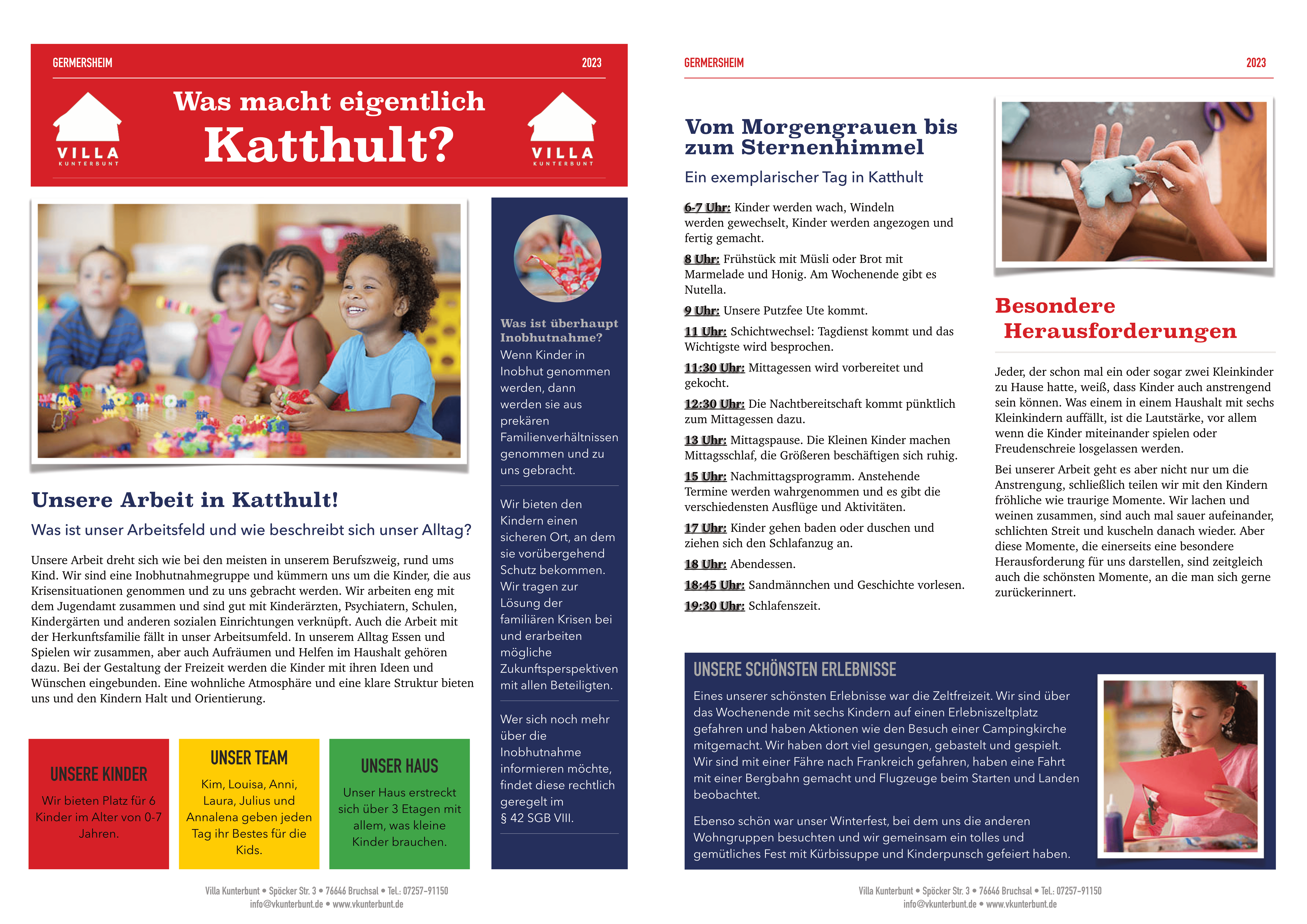 Die Arbeit in der Villa Kunterbunt erfordert Mitarbeiter*innen mit fachlicher Kompetenz und hoher Belastbarkeit, die es verstehen, ihre Qualifikation und das daraus resultierende Wissen mit Zuneigung und Wärme zu verbinden. Eine klare Haltung im Sinne unserer angebotsübergreifenden Werte ist Ausgangspunkt der Arbeit. Die Mitarbeiter*innen sind Ansprechpartner, bieten emotionale Unterstützung, sowie Halt und Sicherheit in einer als unsicher erlebten Zeit.